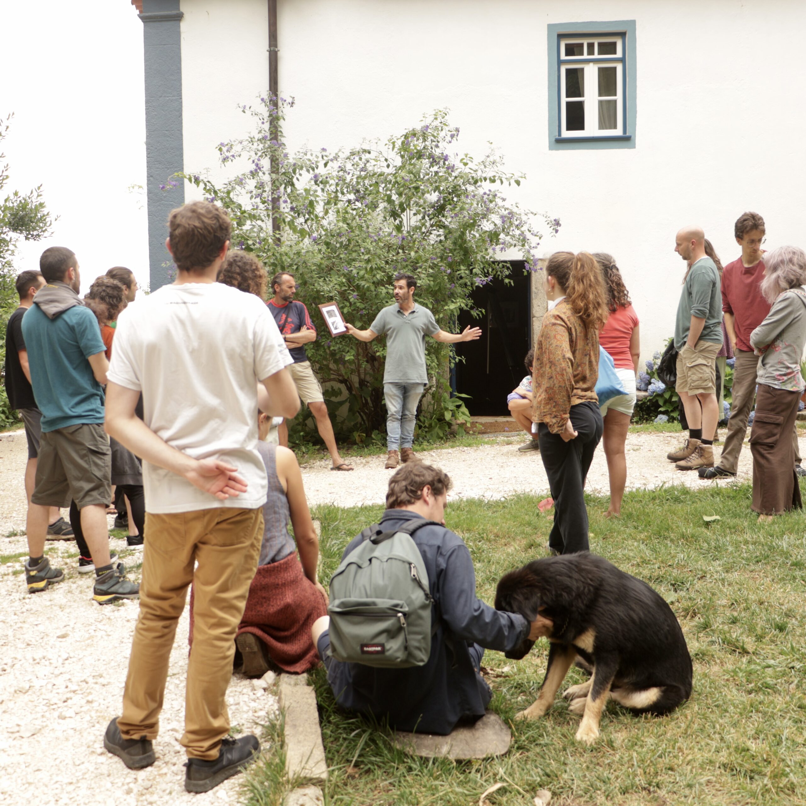 Secar a roupa à chuva (’drying clothes in the rain’) is the culmination of a month of residency of a group of 12 artists in Quinta das Relvas as participants of project SEEDS – means for a sustainable art practice, within the Creative Europe program. Project SEEDS had its start at the beginning of September, with a weekend of conferences featuring speakers such as Linda Weintraub, Yasmine Ostendorf-Rodriguez and Sónia Francisco. These speakers then came to Quinta to facilitate some workshops. The natural force that is Quinta das Relvas – an oasis of plant variety in the midst of a land almost completely made up of eucalyptus monoculture – was the ideal environment to open up the debate on sustainability. With the instructors the artists walked, trained their eye, read, took care of their mind, consciously harvested, learned how to transform natural elements into matter useful to their practice, questioned… Challenged the current way of the world and debated possibilities for the future. An environment of research and sharing emerged during the last weeks that the 12 artists spent together at the studio. The techniques of reusing natural materials coexisted with a constant questioning of the world around them.
